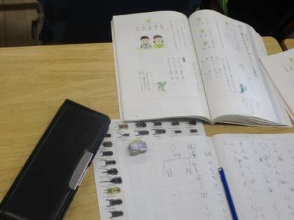 たとえば「明」という漢字。左右に「日」と「月」に分けられます。「日」と「生」を上下に付けると「星」。いろいろな漢字を組み合わせてできている文字があることを知り、部首についても学んでいました。2年生の国語です。