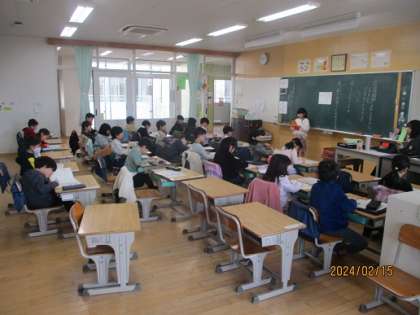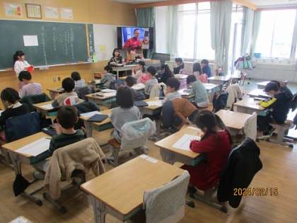 1年生が国語の学習で校内の教職員にインタビューをしました。私も「なぜ校長先生になったんですか」などの質問を受けました。各自がインタビューした内容を教室でみんなに伝え、聞いた子どもたちはそれをメモするという活動を行っていました。話す、聞くの学習です。