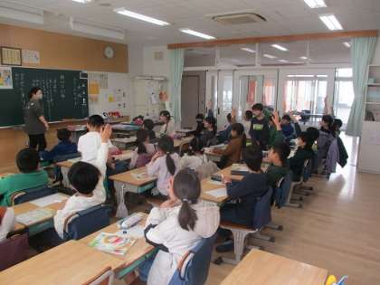 荷物を落とした人がいて「取ってあげようか」と声をかけたら「いいよ、自分で取るから」と言われた。この様子を演じてみて、どんな気持ちになるか、見ていてどうかを振り返っていました。親切について考える3年生の道徳です。やってみると、そこで感じることがあるようです。