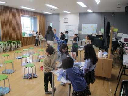 1年生の音楽は旋律づくり。教科書の内容をもとに簡単な旋律を自分で作ります。担当の教員の伴奏に合わせて自分が作った音楽をみんなに披露。みんな意欲的に取り組み、発表したい子がたくさんいました。