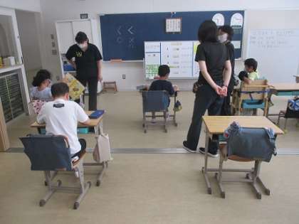おおぞら学級の子どもたちは、学級を2つに分けて、2日に1回午前中に登校するという形をとっています。