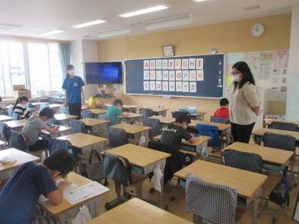 今日から専科の授業を本格的に始めました。新しい学年での学習の説明に続き、活動の内容、座席の配置などを配慮して図工、家庭科、英語の授業が行われていました。