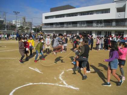 今日からようやく今年度の元気アップタイムを始めました。中休みは1,2,3年生。ジンギスカン体操の後、学級毎に長縄に取り組みました。校庭いっぱいに広がって、みんな一緒に体を動かす楽しさを味わいました。