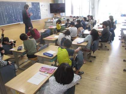2年生の道徳です。家族とのかかわりの話を通して、自分が家族のためにできることは何かを考えていきます。普段当たり前のことを改めて見つめ直してみると、いろいろ感じたり考えたりする子どもたちです。