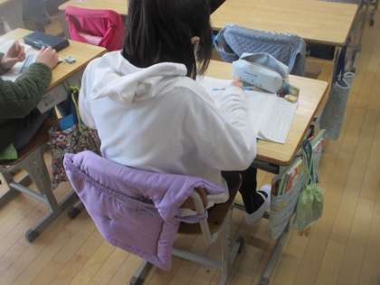 国語で伊能忠敬についての文章を読んでいる6年生。忠敬がどのような人物だったかわかる文章を見つけ人物像を深めようという課題です。熱心に文章を読み返しながら、ヒントになりそうな記述を探していました。