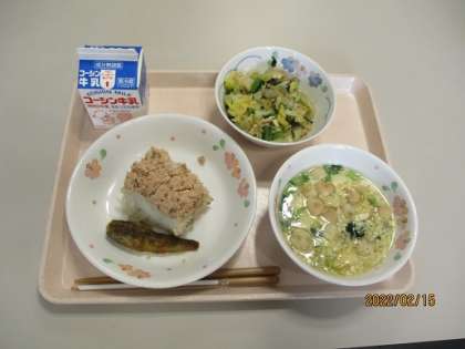 献立は、ます寿司、わかさぎの変わり漬け、小松菜かきたま汁、白菜の煮びたし、牛乳でした。