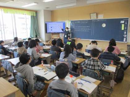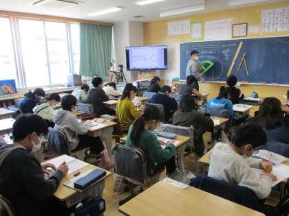 5年生の算数では正八角形をかいていました。円をかき、その中心を8等分して弧に向けて印をつけ、その点を結んでいく、というようなやり方で進めていました。一つ一つていねいな作業が求められます。