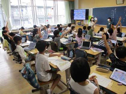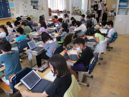 3年4組の国語の授業を参観しました。絵地図を見てスタートとゴールを決めます。スタートからゴールまでの道筋を説明する文章を書きます。それを友だちに聞かせてどこかゴールかを当ててもらうという活動を行っていました。正確に表現する力、しっかりと聞き取る力などが求められます。楽しみながら学んでいました。