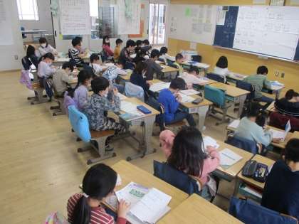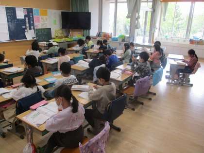 2年生の算数はたし算の筆算。筆算では位をそろえて丁寧に計算していくことが大切です。横の線を引く際に定規を使って取り組んでいる子もいました。このように慌て落ち着いて取り組むことでミスの多くは防ぐことができると思います。