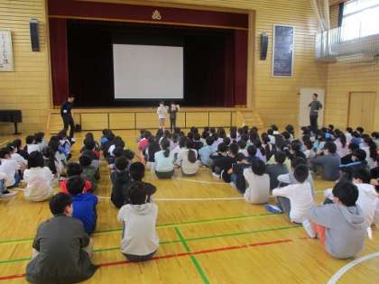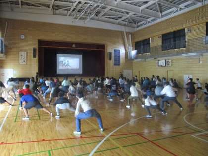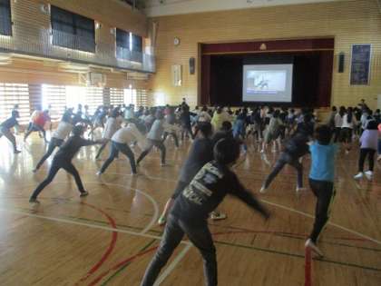 5年生が、学年全体で運動会に向けた表現運動の練習を開始していました。表現運動の実行委員会の子どもたちを中心にしながら進めていくことを確認し、映像を見ながら試しに踊ってみていました。子どもたちの主体的な取組で進めていきます。