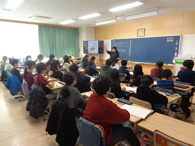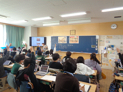 写真は3年生の給食風景です。
