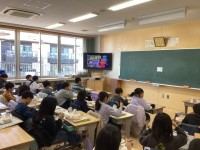 スケートリンクに降りて、滑り始めました。学校ではできない体験にみんな笑顔です。