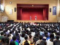 葛西警察署から3名の方が来てくださり、不審者に対して自分の身を守るにはどうすればいいのか、など安全に生活していくためのお話をしていただいた。
