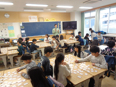 今日は、ちらし寿司、わかさぎの竜田揚げ、沢煮わん、桜まんじゅう、牛乳の献立です。