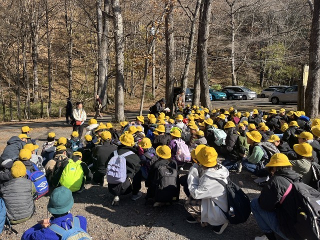 源泉を散策しました。硫黄の匂いにびっくりしている子が多かったです。水たまりに手を...