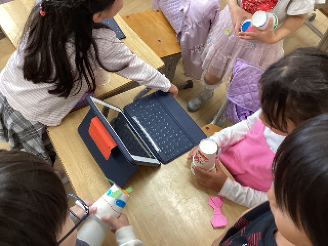 2年生は、生活科「うごく うごく わたしのおもちゃ」で、2つ重ねた紙コップを輪ゴ...