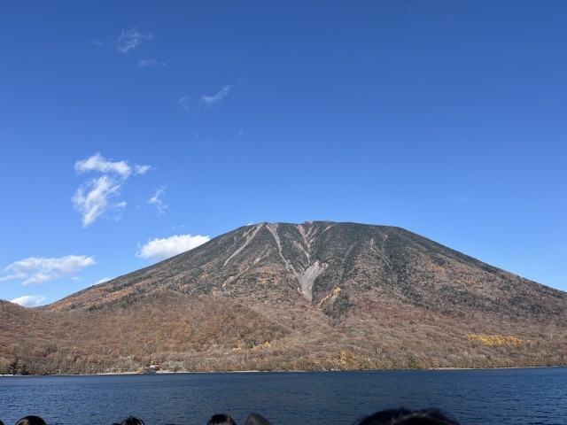 中禅寺湖で乗船しました。湖上から眺める男体山も見事です。湖面が陽の光を浴びて、キ...