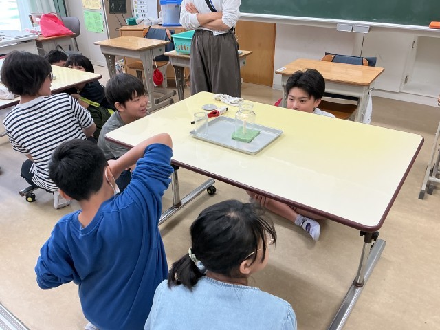 ものの燃え方の実験を行っています。火を燃やし続けるには、どうしたらいいのか、何が...