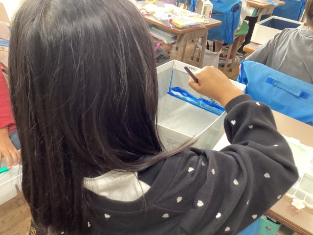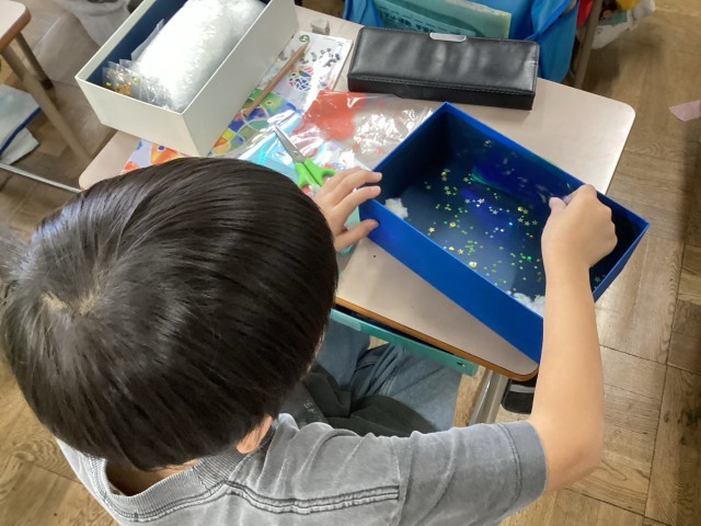 箱の中に自分の想像する世界を広げようと、どの子も思い思いに制作活動に取り組んでいました。