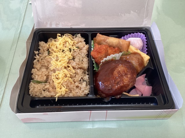 予算の中でお土産を購入した後、2階のスペースをお借りしてお弁当をいただきました。