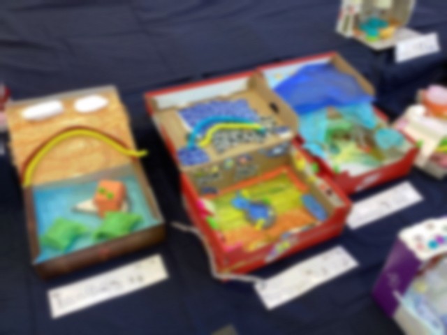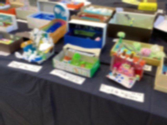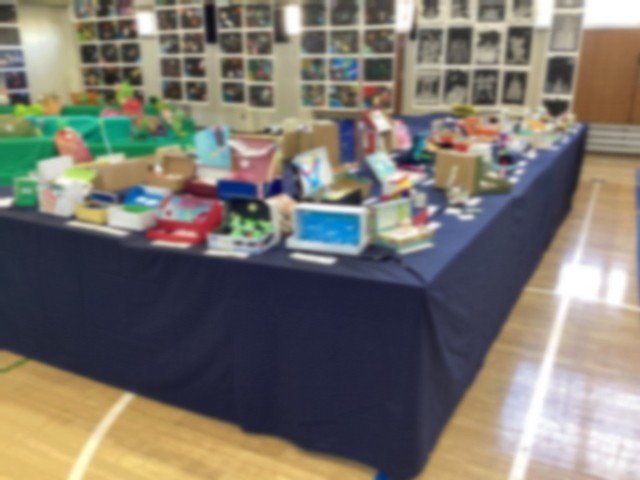 子供たちが一生懸命作った作品たちが、展示場である体育館に並び始めています。