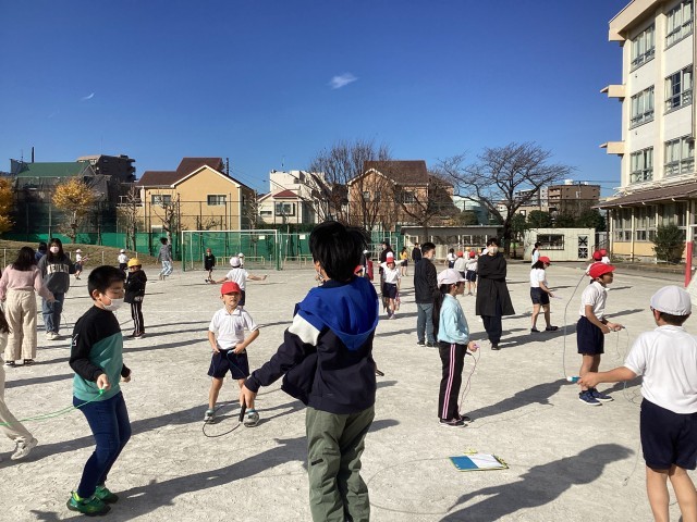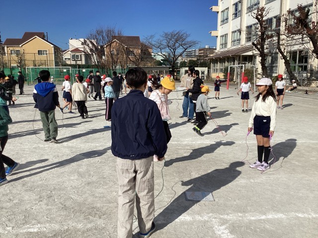 上学年の子が下学年に跳び方を教えたり、下学年の子が「できたよ!」と嬉しそうに報告したりと、自然と声を掛け合う姿が見られました。異学年で交流しながら、楽しく活動するとともに、学年をこえたつながりを深めることができました。