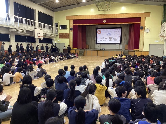 本校は開校55周年を迎え、記念集会を開催しました。各学年が第四葛西小学校をお祝いするために、心のこもった出し物を披露し、全校で節目の年を祝うことができました。