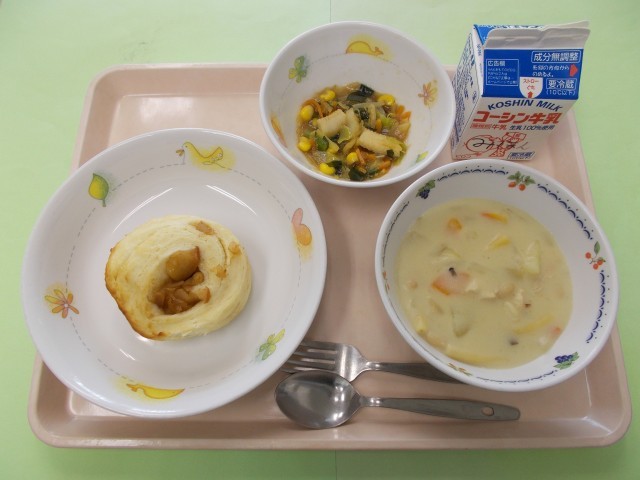 今日のパンも給食室で朝から生地を練って発酵させ、