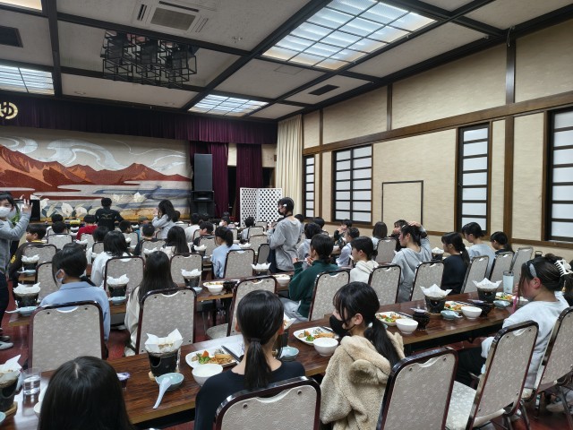 夕食は食事係が全員分の配膳を手伝い、準備をしました。魚沼産コシヒカリやなめこ汁を何度もお替わりする姿が見られました。