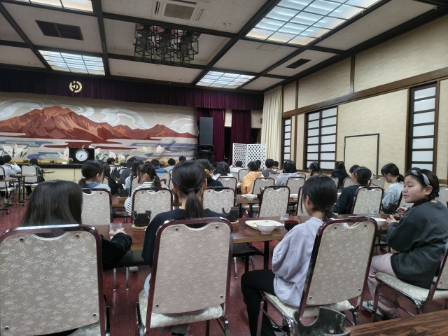 2日目の朝食を食べ、これから小出スキー場に向かいます!天気は雪が舞っている状況です。