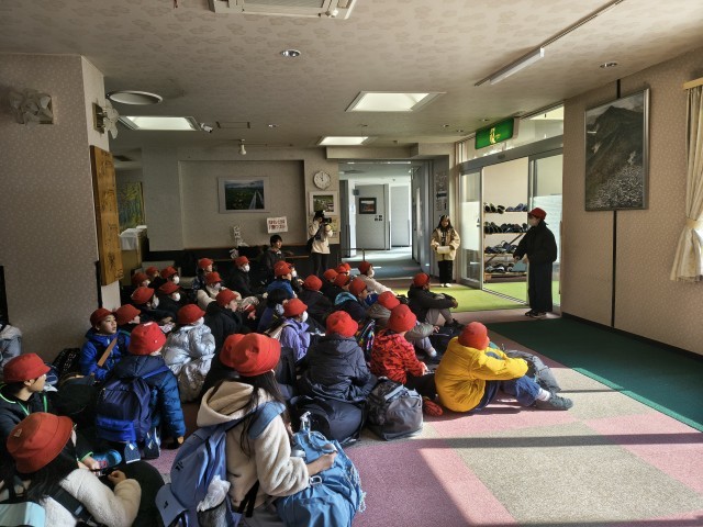 ゆのたに荘で閉校式を行いました。宿舎の方にみんなでお礼を言って、ゆのたに荘を後にしました。