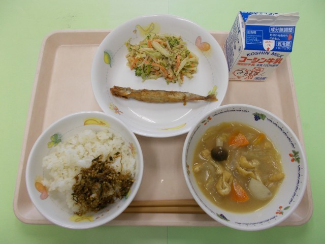 今日の注目料理はさといもと油揚げのみそ汁です。