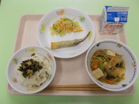 今日の献立は、・ごはん・あげ大豆のごまがらめ・牛乳・さばのしょうゆ焼き・ごぼうと...