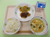 今日の献立は、・手作りチーズパン・牛乳・ツナカレーサラダ・ごろごろ野菜のスープ煮...