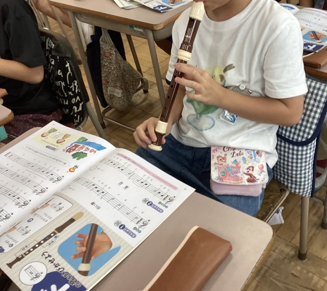 音楽では、リコーダーの学習を進めています。今は高いドの音を練習中です。ふさぐ穴とあけておく穴がだんだん難しくなってきましたが、繰り返し練習するうちに、きれいな音が出るようになってきました。「河はよんでいる」は難しい曲ですが、指遣いやタンギングに気を付けながら頑張っています!
