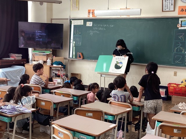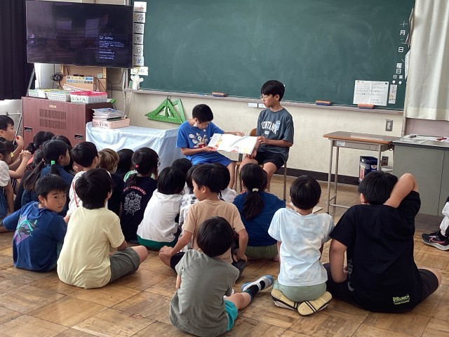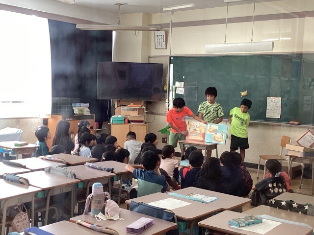10月2日〜17日は、どんぐり読書週間です。図書委員会では、低学年のクラスに読み聞かせしに行きました。