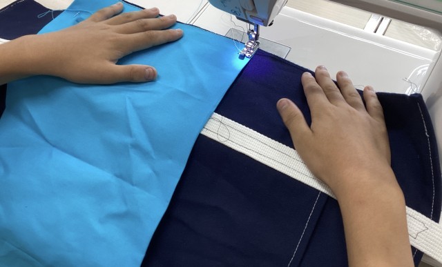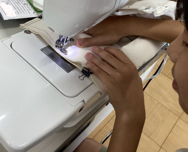 初めは1年ぶりのミシンのセットに苦戦していた6年生ですが、学習が進むにつれて操作を思い出したようで、順調に製作が進みました。完成まであと少しです。