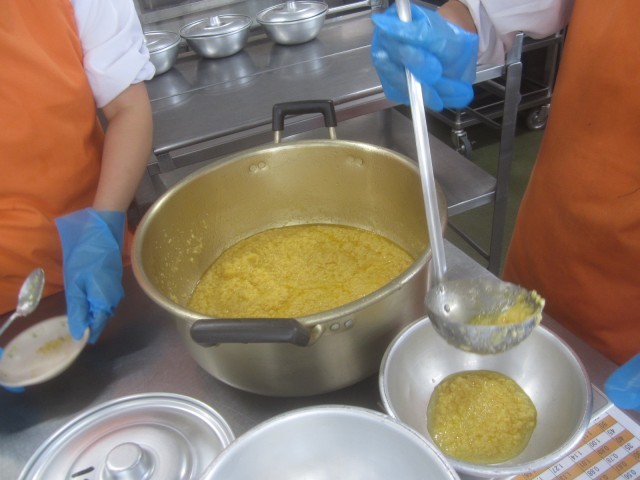 今日の給食では、秋が旬の食べ物をたくさん使いました。