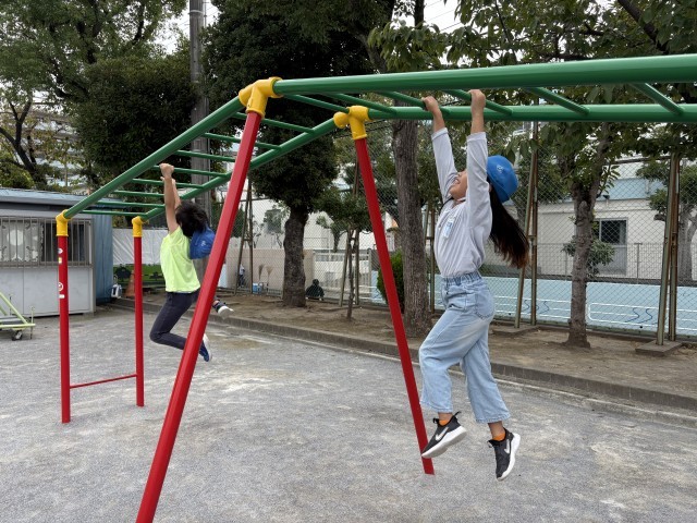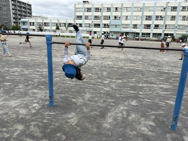 鉄棒やうんていなど、さまざまな遊具で体を動かしました。