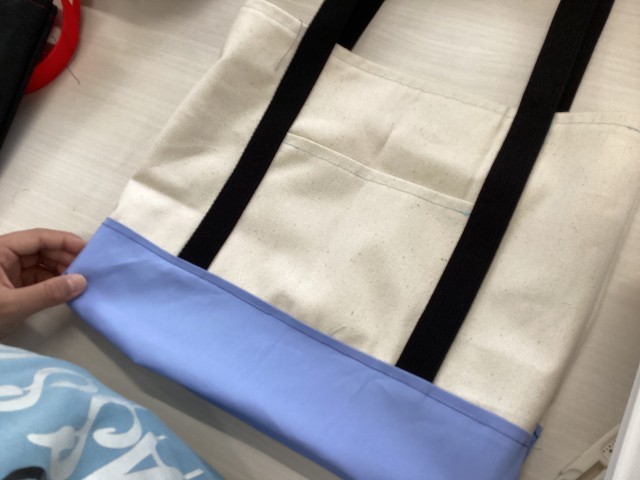 トートバッグ製作もいよいよ大詰めです。持ち運ぶものなので、飾りは最小限に、ミシン糸を変えてステッチで飾ったり綺麗な形を目指したりしてました。