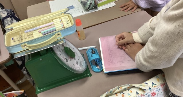 3年生は、算数で重さの学習に取り組んでいます。身近な物の重さを調べたり新しい単位を学習したりしています。実際に活動してみると、重さを計る活動を通して、より実感をもって学習を進めることができています。