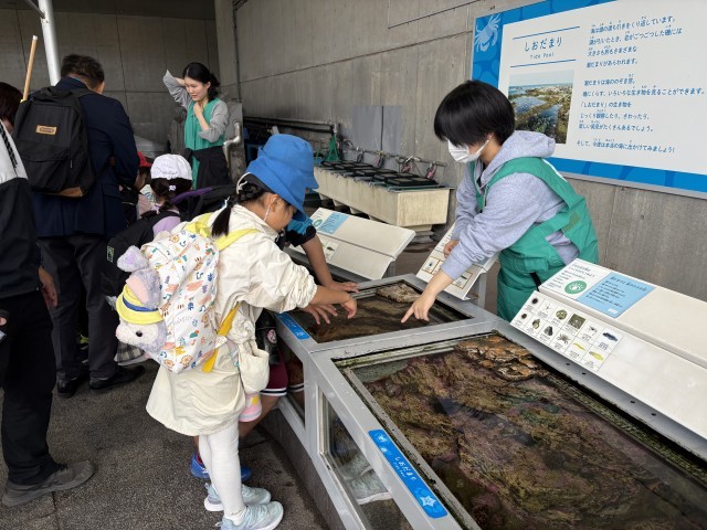 水族園の生き物を見るだけではなく、展示物やふれあいコーナーで体験をしたり、タブレットにあるワークシートを記入したりして、活動を楽しみました。