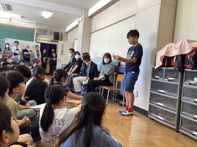 先週の学校公開では、学習したことを他のクラスの友達や、保護者の方、地域の方の前で発表しました。普段とは違う環境で緊張している様子も見られましたが、精一杯まとめたことを伝えていました。終わりの会では、地域の方から、昔の南葛西小学校のことを聞き、驚いていました。この学習で終わりにせず、これからも地域の一員として活躍していってほしいです。