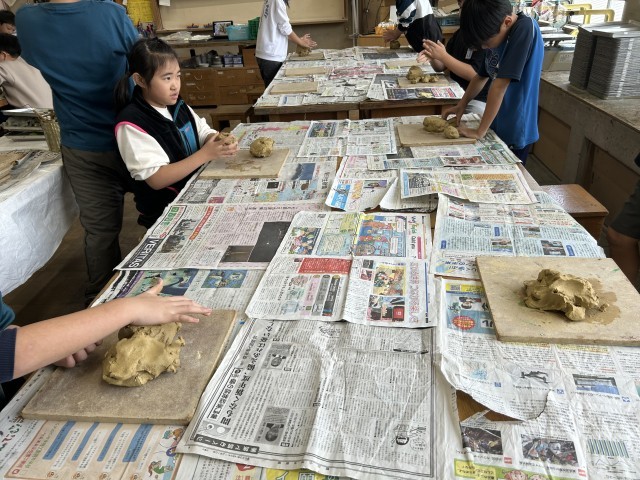 粘土で自由に形を作りました。自由な発想でさまざまな形をつくり、友達と交流しました。