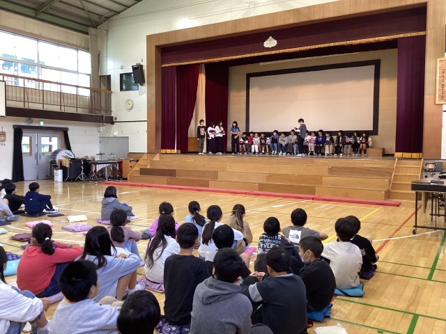 体育館での練習が始まっています。各クラスごとに発表を見合って、よかったところやアドバイスを交流しました。体育館での練習はまだ2回目ですが、大きな声で堂々とセリフを言う児童が多くて、素晴らしいです。