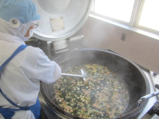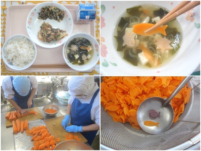 調理員さん達が朝からたくさん型ぬきしてくれたので、魚がいっぱいでにぎやかなスープになりました。