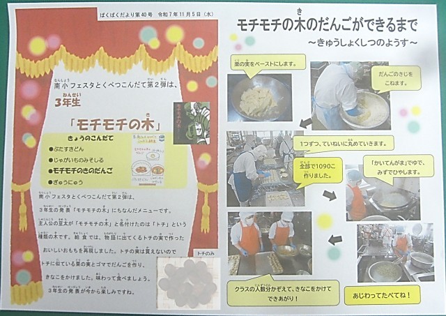 【給食】南小フェスタ特別こんだて:3年生「モチモチの木」