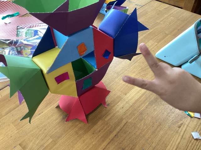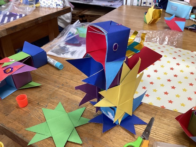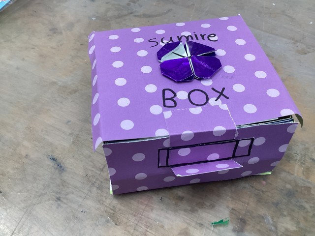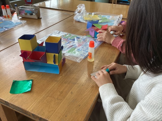 使って楽しい小物入れを考え、いろいろな形の箱の組み合わせ方を工夫してつくりました。お家で使うことを楽しみながら活動することができました。