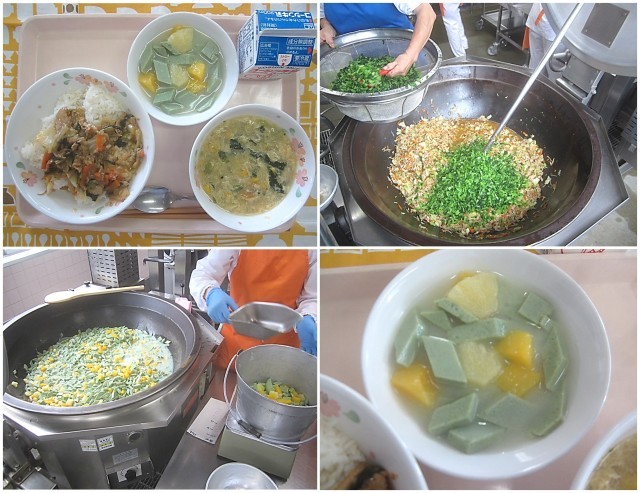 給食では、大切な小松菜を使ってスペシャルな3品を作りました。