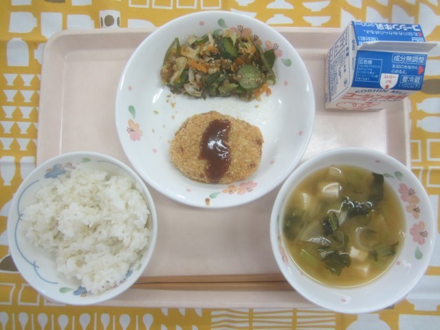 コロッケは、タネをしっかり冷ましてから揚げないと爆発してしまうため、大量調理の給食ではとても難しいメニューです。